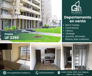 Departamento en San Miguel, 1D 1B con bodega, 40m2 totales, ubicado a pasos de líneas de metro San Miguel y El Llano.