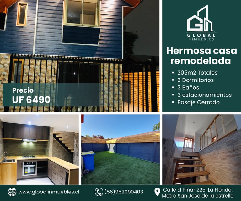 Hermosa casa remodelada en La Florida, 3D 3B con 3 estacionamientos. 120m2 construidos, 85m2 de patio.